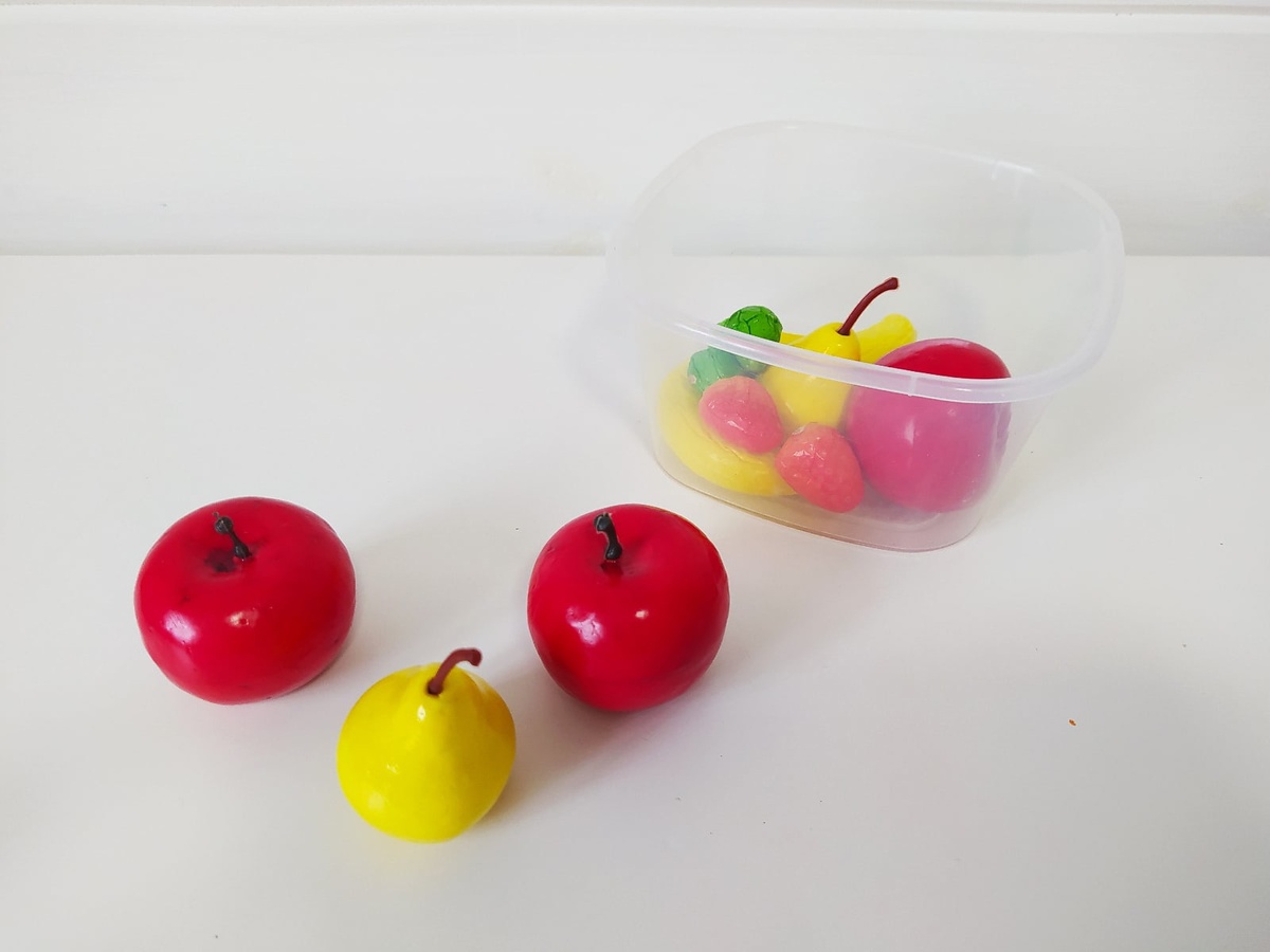 Изучение элементарной математики у нас началось с очень простых понятий, таких как: 1. Состав числа В повседневной жизни я стараюсь донести до малыша состав числа. Некоторые мамы учат сразу же считать ребёнка: один, два, три, четыре и т.д. Но на мой взгляд, такие занятия не имеют под собой основы - понимания откуда взялось число три, например. Конечно, такие упражнения мы начали проводить ближе к 1,5 годам. Это происходило чаще всего за ланчем, когда на столе лежали фрукты. Например, почему на столе три фрукта? Потому, что мы положили два яблока и одну грушу. Почему на диване две игрушки? Мы положили одну куклу и одну пирамидку. В «Fix Price» купила вот такой небольшой набор фруктов и ягод для изучения количества и проведения игры "четвёртый лишний". Он нам не раз пригодился, угощали фруктами игрушки и соотносили настоящие фрукты вот с такими пластиковыми. 2. Количество Один, много и нет ни одного. Накрывая на стол перед обедом мы рассматривали столовые приборы и посуду. Например,
