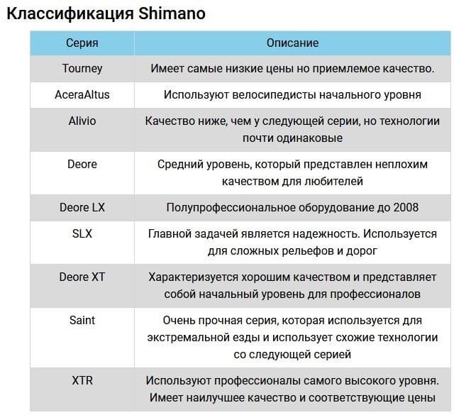 Классификатор заднего переключения передач велосипеда системы Shimano