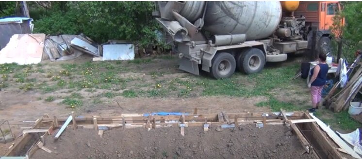 С утра получил посылку и был не в восторге, хорошо, что открыл на почте и засвидетельствовал бой стекла одной из камер видеонаблюдения. Стройка началась и пришло время заказать бетон для заливки фундамента, так как объём большой и самостоятельно заливать я не решился, тем более очень много сил и времени потеряешь. А что бы не сливать лишний бетон, мне подсказали приготовь место для заливке дорожки или ещё куда, поэтому я решил выкопать траншею под пристрой и правильно сделал, бетона осталось не мало, водитель так и сказал, все рассчитывают с запасом, но ни кто не приготавливает место куда слить лишнее, поэтому льём в обочину или на дорогу просёлочную.