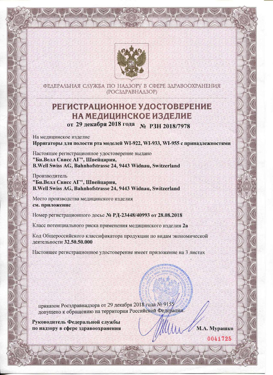 Подтверждающие документы для ирригаторов B.Well
