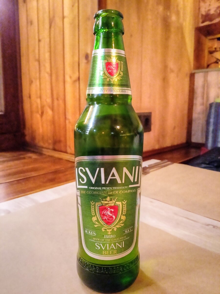 В Питере мы пару раз ужинали в грузинском ресторанчике, находящемся неподалеку от нашего места жительства. А у нас есть такое правило - в аутентичном ресторанчике надо употреблять аутентичную еду под аутентичные напитки. Так что пришлось брать грузинское пиво Sviany, название которого переводится на русский как "Хмельное" (спасибо товарищу в комментах, который подсказал правильный перевод, а то гуглопереводчик мне выдал совсем другое).