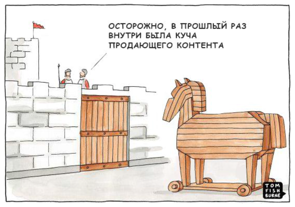 Меня зовут Светлана Ковалева, я — эксперт по экспертному контенту, руководитель студии контент-маркетинга. Полезный материал – это такой, после прочтения/просмотра/прослушивания которого пользователь может применить полученную информацию, даже если не купит ваш продукт. Именно отчуждаемая польза делает экспертный контент охватным и вирусным, ведь пользователи: Три примера отчуждаемой пользы Digital-агентство опубликовало чек-лист по настройке контекстной рекламы. Могу настроить сама, а могу нанять их и проверить агентство как подрядчика. Производитель макарон Barilla в соцсетях поделился рецептом пасты. Захочу – приготовлю с Barilla, а захочу – с Макфа. Клининговая компания Qlean составила «чистый лист» (календарь уборки). Можно пользоваться самостоятельно или запланировать дела для домработницы. Что будет, если не показать пользу? Принцип «отчуждаемости» часто нарушают: подробно описывают проблему, «топчутся на болях» покупателей и предлагают решение в стиле «просто заплатите нам».