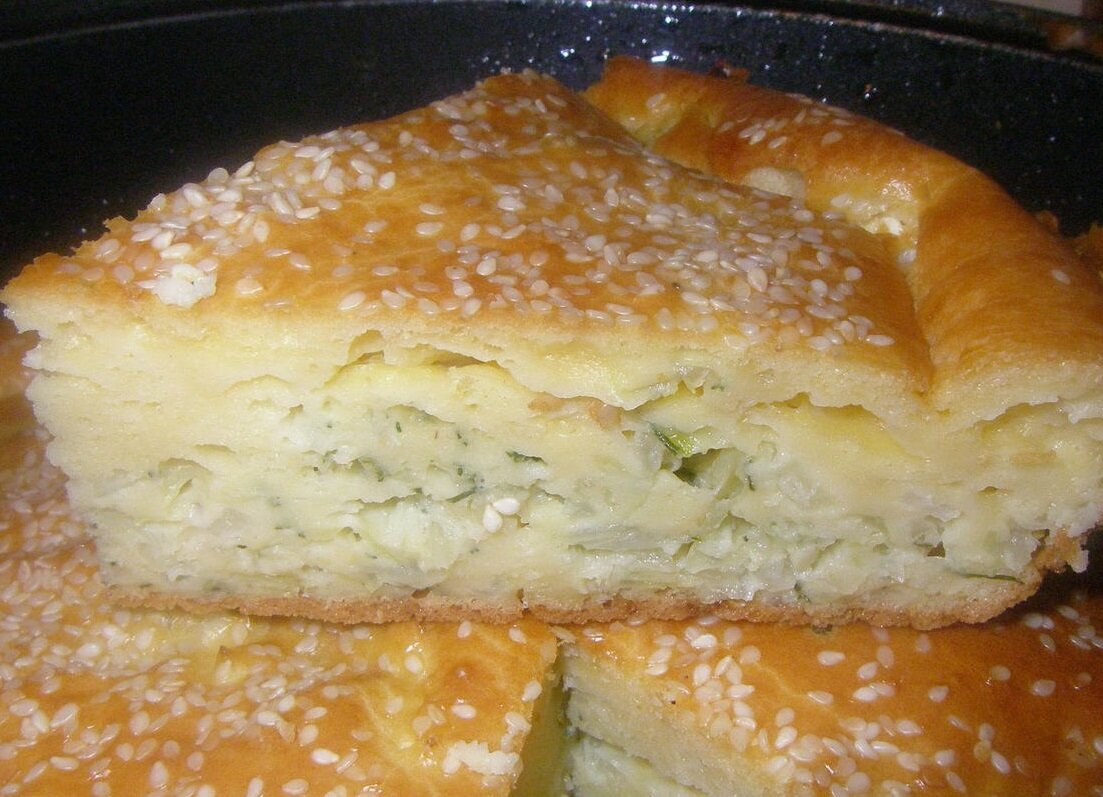 Заливаем получившуюся начинку оставшимся тестом, можно посыпать кунжутом )