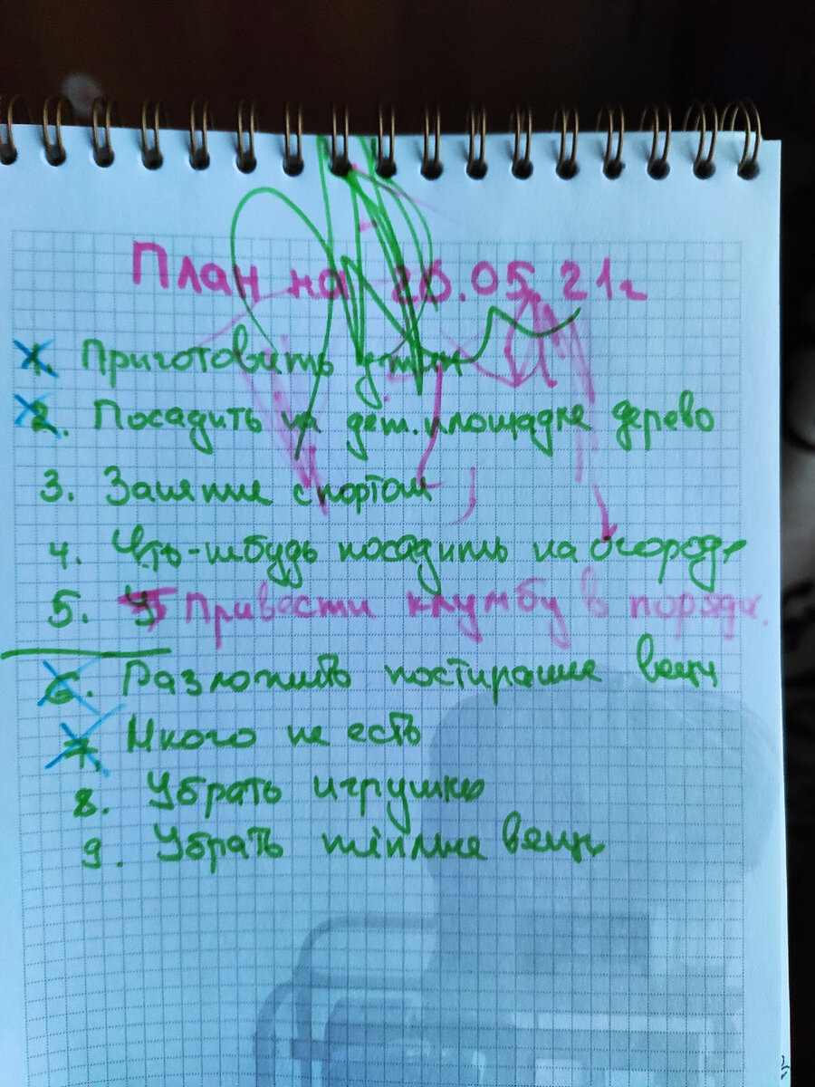 Продолжаю жить по плану. Что-то не совсем дела делаются. Но ничего, главное что делаются хоть какие-то. Вчера сил не было написать. Пока укладывала детей, сама заснула. Такое очень часто со мной бывает. Вот мои вчерашние дела: План помогал составлять сын. Вместе писали. 1. Приготовить ужин, с этим справились. Сейчас готовлю,что полегче. Чтобы больше времени было. Ужин готовлю в обед, когда спят малыши. Сегодня у нас картофельное пюре с рыбой. У нас салака,я её запекала на протвине в духовке,а у детей треска на пару. И овощной салат. На полдник жарила сырники. 2. Вчера посадили на нашей детской площадке деревья. Пять клёнов. Будем поливать, чтобы прижились. 3,4,5 - не сделаны 6. Разложила наконец-то чистые вещи. Можно стирать снова))) 7. Много не ела 💃 8,9 - тоже не сделаны, не хватает мне времени на все мои дела. А вчера ещё сходили с детьми на пруд. Там такая красота. Сегодня список с утра я не написала, должны были поехать оформлять машину,но перенесли на завтра. Но сегодня много