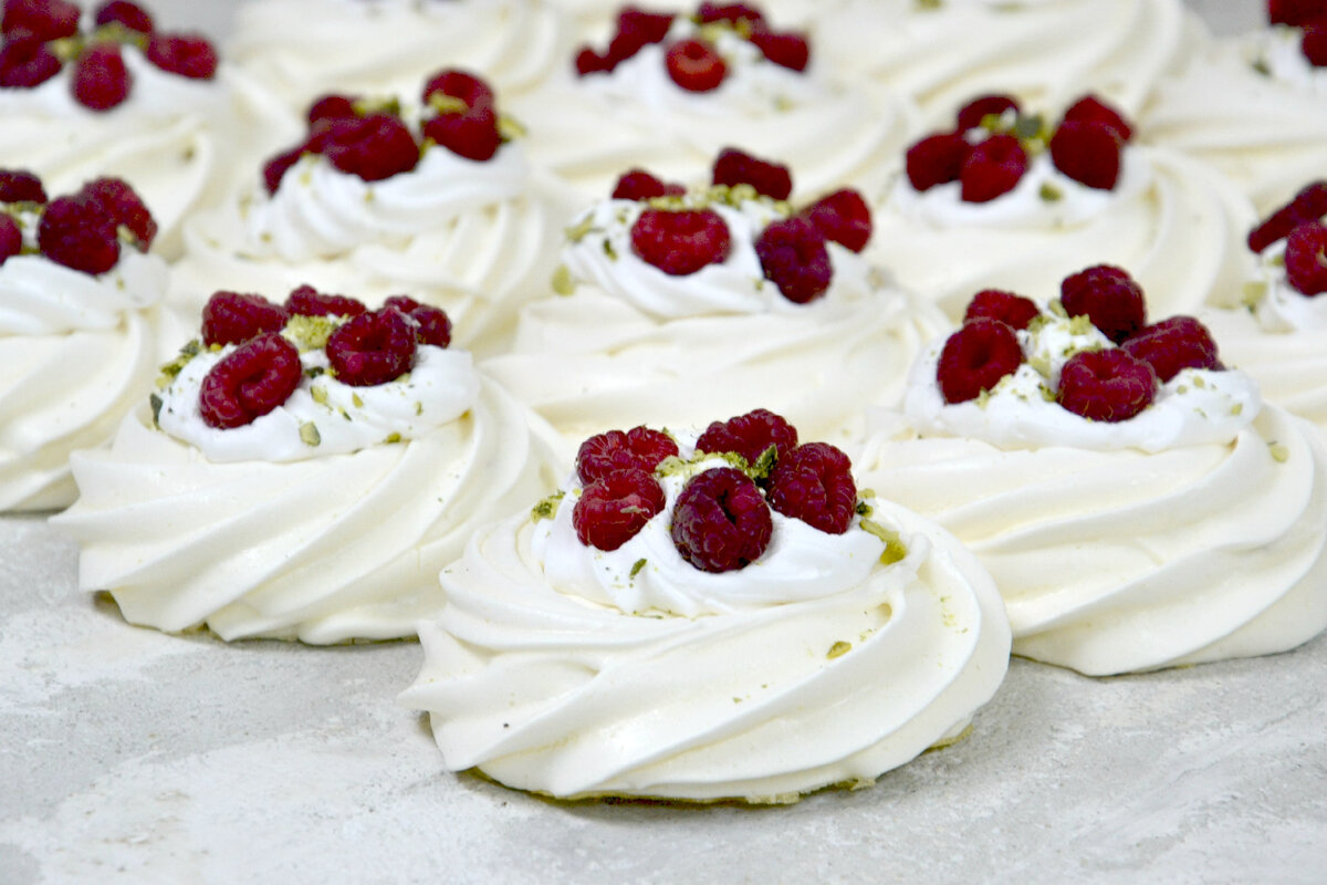 Мини-десерт «Павлова» - 150 гр белков - 300 гр сахара - 0.5 ч.л лимонной кислоты - 30 гр крахмала (у меня кукурузный) Для крема нужно: - 200 гр холодных сливок 33% - 25 гр сахарной пудры - Ягоды для украшения Для меренги ставим белки на водяную баню, смешиваем их с сахаром и взбиваем миксером на средней скорости около 5-6 минут. Через 5-6 минут убираем ёмкость с водяной бани, продолжаем взбивать на высокой скорости до твердых пиков. Добавляем лимонную кислоту и взбиваем ещё 30 секунд. В конце добавляем крахмал и перемешиваем лопаткой или венчиком. Полученную массу перекладываем в кондитерский мешок и отсаживаем меренгу. Предварительно застелив противень пергаментом. Отправляем противень в разогретую до 160° духовку и сразу же убавляем температуру до 100°! Сушим безе 1.5 часа. Режим верх/низ. Духовку во время приготовления не открываем! Когда безе будет готово, откройте дверцу на половину и дайте ему остыть в духовке. Для крема, сливки взбивайте миксером с сахарной пудрой 5–7