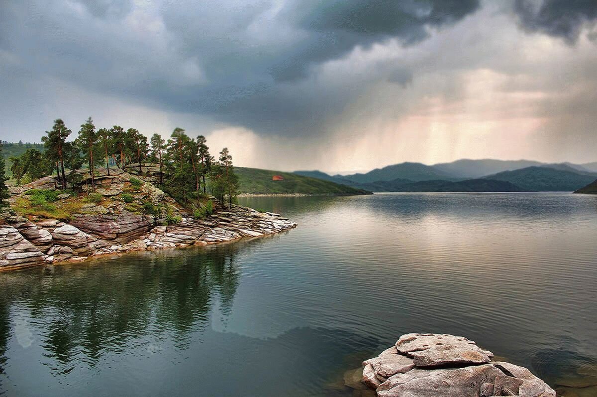 Красота,тишина,не ветерка,всё замерло и только со всех сторон горы отодвинутые водой на бескрайние расстояния.Как море и да-же лучше моря,нет волны.Вода чистая,прозрачная,тёплая,как парное молоко,зовущая к себе.Бредёшь по песочному бризу снимая усталость после длительной дороги,вкусно пахнет водой,свежестью.На воде мирно покачиваются чайки.