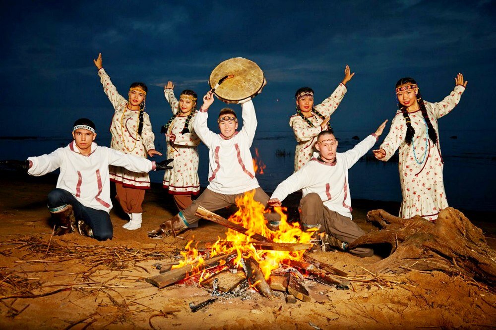 Музыкальное творчество народов Севера очень древнее. Невозможно точно указать дату его зарождения. Песни и танцы передавались от поколения к поколению. Молодых людей обучали мелодиям, движениям танца. При этом и слова песни, и фигуры танца могли меняться. Ведь каждый новый певец или танцор исполнял их по-своему, добавлял что-то новое. Музыкальное искусство северных народов было тесно связано с поклонением духам и богам. Уже на ранних металлических бляхах средневековья изображены люди в танцевальных позах. Так как такое зрелище было посвящено богам, то главным исполнителем являлся шаман. Самыми древними музыкальными инструментами были ударные — бубен и струнные инструменты. Струны в древние времена делали из сухожилий животных. Конечно, в сравнении с керамикой или металлом, выполненные из дерева и кожи музыкальные инструменты не были долговечными. Но их форма, способы изготовления повторялись из века в век, поэтому и сегодня инструменты почти не отличаются от тех, что использовались в г