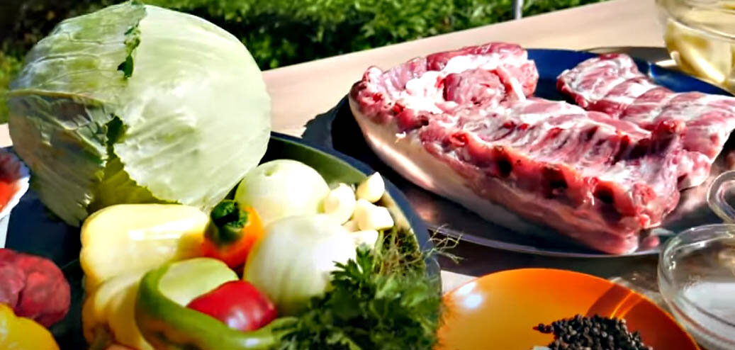 Привет друзья походники и туристы, выживальщики и выживальщицы, сегодня я не в походе и не на рыбалке. Сегодня я отдыхаю на даче, и как всегда в своем стиле я решил приготовить, что ни будь необычное на костре. Готовить мы будем настоящий, наваристый украинский борщ по рецепту моей бабушки в казане. Сегодня будет максимально вкусно. Моя бабушка борщ варит на свиных ребрах, нам потребуется три с половиной килограмма свиных ребер, картофель, 2 стакана фасоли, фасоль я предварительно вчера еще с вечера замочил в холодной воде, соль, растительное масло, сахар, перец горошком и лавровый лист. Обязательно овощи, капуста болгарский перец, острый перец, зелень укроп и петрушка, лук, чеснок, около 500 грамм протертых помидоров, лимон, морковь и свекла. Разжигаем огонь и заряжаем наш любимый казан на 16 литров.))) Первым делом в казан отправляем немного растительного масла, даем маслу нагреться и смазываем стенки казана. В начале сделаю в казане поджарку, точнее две поджарки, а уже потом начн