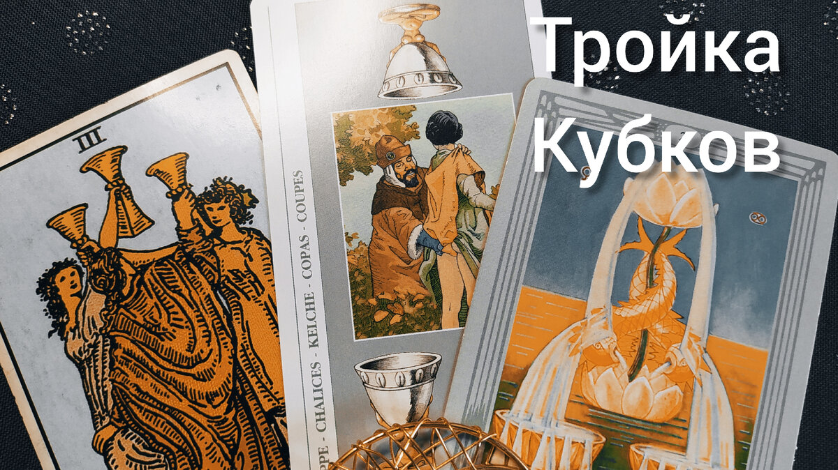 Сегодня продолжаем разбирать карты разных колод. Чем они различаются? И почему трактовка одной колоды не подходит к другой! Сегодня разбираем тройку кубков: колода Р. Уэйта, колода ДЕКАМЕРОН, колода ТОТА По колоде Р.Уэйта эта карта означает праздник, корпоратив, либо любовный треугольник (как негативная трактовка). А вообще это успешное окончание дела и теперь мы ждем плоды. По карте из колоды ДЕКАМЕРОН - это тоже может быть и праздник и застолье, но также это еще и не желание думать своей головой, а слушать, что скажут люди. По этой карте один из партнеров, точнее мужчина, ходит на лево... В ваши дела вмешивается старшее поколение и даёт вам "дельные" советы. Так же смотрим, что лежит рядом, какой аркан, если мечи, то все будет не совсем хорошо, если положительные арканы, то можно выдохнуть) Тройка кубков ТОТА. Это карта "ИЗОБИЛИЕ". Ну тут сплошное счастье, любовь и процветание, но есть нюанс если вы картам задаёте вопрос о том получу ли я что либо, что мне делать с этим и этим ....