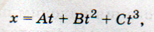 Для школьников и студентов. Вспоминаем механику (кинематику и решение задач на кинематику). Теорию на кинематику прямолинейного движения материальной точки смотрите в статьях Занятие 2, Занятие 4, Занятие 6. Условие задачи: Движение материальной точки по прямолинейной траектории описывается уравнением: Найти координату точки, её скорость и ускорение в момент времени 3 с. Решение. Подставив в уравнение (1) значения получим координату точки в этот момент времени: Учитывая, что скорость при прямолинейном движении есть производная от координаты по времени, продифференцируем уравнение (1) и получим выражение для скорости: Подставив в уравнение (2) значения получим значение скорости в искомый момент времени: Так как ускорение при прямолинейном движении есть производная от скорости по времени, то продифференцировав уравнение (2), получим уравнение зависимости ускорения от времени: Заметим, что движение точки не является равнопеременным (в уравнение движения входит время в третьей степени).