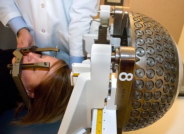 Все привет, вот что вам представится, если вы услышите слово (словосочетание?) «гамма-нож»? Признаюсь, я в первый раз услышал это пару часов назад, по радио, в пятичасовом выпуске обычных, «мирских», а не научных новостей. Еще утром у меня возникли ассоциация, что гамма-нож, это какой-то особый высокотехнологичный метод лучевой противоопухолевой терапии. Я оказался прав. Гамма-нож — это специальный нейрохирургический аппарат. Википедия сообщает: установка для стереотаксической радиохирургии патологий головного мозга, использующая ионизирующее излучение большого числа источников из Кобальта-60. Как нетрудно догадаться, лечит гамма-излучением (радиацией, да-да!). Это дело очень опасное для здоровых частей организма, так что, чтобы избежать проблем, надо очень точно попасть лучами в мишень. Процесс лечения на словах звучит, как пытка из психушек викторианской эпохи, но на самом деле, процедура не такая уж мучительная (анестезия же), да и жизни спасает реально. Итак… На голову пациента