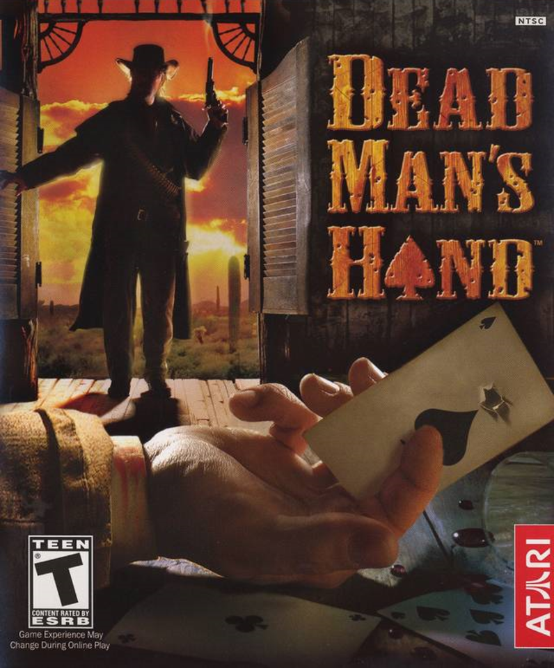 Dead Man's Hand-это аркадный шутер от компании Human Head Studios, которая известна играми Prey[2006] и Rune.Игра вышла на PC и XBOX 26 марта 2004 года.В России игру издавали 1С под названием Дикий Запад: Игра со смертью.Среднее время прохождения 2-3 часа. Сюжет Он довольно простой.Герой сбегает из тюрьмы и решают убить всех разыскиваемых преступников,пока попутно охотятся за ним. Графика На тот год она была довольна неплоха,ведь видно что проект не слишком дорого стоил по разработке и ждать от него графику фаркрая не стоит. Музыка Она довольна неплохая как для шутера про дикий запад.Писали её Michael Larson и Rom Di Prisco. Геймплей В игре есть 27 уровней.Среди них обычные и дополнительные.На одних мы будем ехать на тележке и кататься на коне,на других ходить по локациям и расчищать их.А на некоторых уровнях захватывать и удерживать точку.А теперь по полочкам.В перед уровнем нам дают выбор из трёх пистолетов,винтовок и дробовиков.В самом уровне мы можем сыграть в покер и получить бон