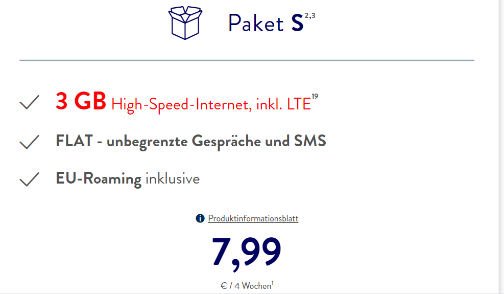 Относительно недавно я поняла, что без немецкого номера, выживать в Германии будет сложно. Несмотря на то, что в общаге есть Интернет, а с близкими я связываюсь по мессенджерам, немецкий номер нужен, чтобы улаживать бюрократические вопросы или связываться со знакомыми немцами. Кроме того, часто, когда в документах просят указать номер, по умолчанию строка начинается с +49 (код Германии). То есть свой российский номер туда точно не впишешь. Да и вообще с номером спокойнее – экстренные ситуации никто не отменял. Сказано-сделано. Приступаем к поиску оператора и тарифа. По совету знакомых остановилась на операторе Aldi Talk. Как мне сказали, у них самые демократичные цены… Но, если честно, сразу ужаснулась как от цен, так и от предлагаемых пакетов. Например, опция безлимитного интернета отсутствует в принципе… Мне, конечно, она особо и не нужна, но все равно как-то немного странно... Прикрепляю вам скриншот с их официального сайта (на трех фотках – три разных пакета): Получается, если вы