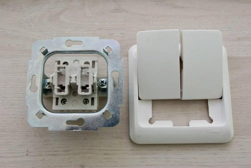 Конструкция и принцип действия двухклавишного выключателя