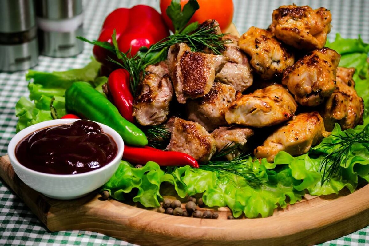 Кавказцы очень хлебосольный народ. И по части приготовления шашлыка им нет равных. Мне однажды довелось попробовать шашлык приготовленный по Кавказским традициям и это просто умопомрачительно. Я уговорила повара поделиться рецептом приготовления. Считаю преступлением не написать вам о нём. Итак, для шашлыка вам понадобиться свиная шея на 2-3 килограмма. Лук репчатый 3 крупные головки. Из специй соль крупного помола, чёрный и красный молотый перец. И главное, это красное сухое вино (по желанию можно полусладкое). Вот и все ингредиенты. Мясо нужно нарезать примерно 5*5 см.,это нужно для того , чтобы он при жарке не стал сухим. Мясо нарезали, добавили специи по вкусу. Нашинковали лучок полукольцами, и тоже туда положили. В конце налили вино и хорошо перемешали. Оставить мариноваться на 3 часа. К готовому шашлыку обязательно подавайте много различной зелени. На Кавказе считают, что если её много кушать, будешь долго жить. А ещё в сочетании с лавашом, это мега вкусно. Всем приятного аппетит