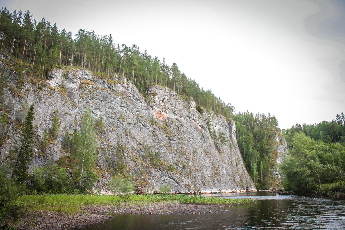 Каква – одна из самых красивых рек севера Свердловской области. Она невелика по длине, но хороша своей дикой природой, чистой водой и многочисленными скалами. В этой статье я хочу рассказать о пяти самых живописных скалах на этой замечательной реке. 1. Камень Мелехинский Это высокая, практически отвесная скальная стена, уходящая основанием в воду. Сложенный известняками скальный массив разделён ложбинами на несколько частей. Это первая столь высокая скала, которая встречается при сплаве по Какве. На скальной стене отчётливо видна светлая горизонтальная линия от поднимающейся весной воды. Местами река вымыла ниши. Напротив скалы есть полянка, удобная для стоянки. В прошлом тут часто размещался летний экспедиционный лагерь юных экологов средней школы № 1 города Краснотурьинска, которым руководил Александр Фёдорович Меркер. 2. Камень Пузан Своё немного смешное название Пузан получил за характерный скальный выступ, который напоминает «пузо». Здесь расположен грот, куда можно заплыть на лод