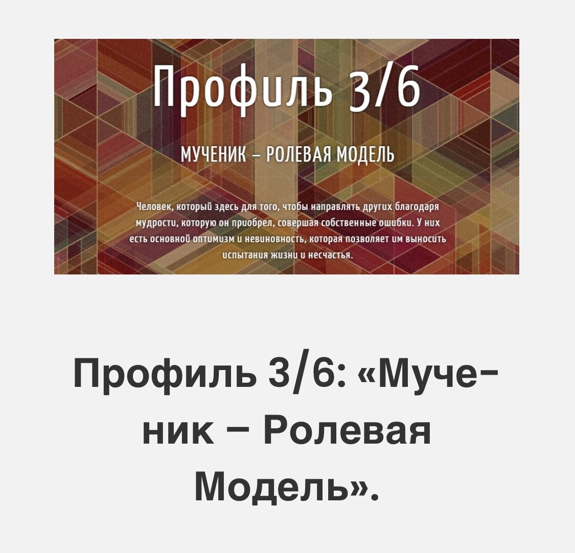Профиль 3/6 Один из самых захватывающих профилей для проживания. Так я думаю сейчас, когда распробовала вкус проб и ошибок. Раньше я считала, что моя жизнь — сплошной кошмар и череда неудач. Профиль 3/6 называется Мученик-Ролевая модель. То есть вляпываясь в разные истории, проходя ошибку за ошибкой я обретаю мудрость и становлюсь ролевой моделью человека, умеющего извлекать опыт из сложностей. Жизнь любого профиля с шестеркой делится на 3 этапа. Мои первые 30 лет были очень сложными. У меня с детства была картинка идеального мира. Где добро всегда побеждает зло, где есть справедливость и всем правит любовь. Я еще верила в философию православия. Я вообще верила в сказки, верила людям. Но стоило мне начать делать первые шаги в жизни, как я тут же натыкалась на то, что все это не работает. Люди врут друг другу и самим себе, друзья предают, у учителей всегда есть любимчики и это часто зависит от того, сколько денег у родителей ученика, медицина не лечит, а калечит, священослужители из це