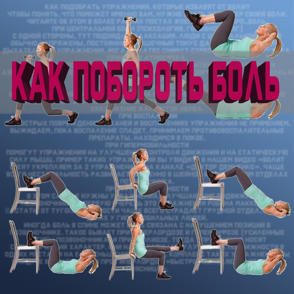 Как подобрать упражнения, которые избавят от боли? Чтобы понять, что поможет именно вам, нужно знать характер своей боли. Читайте об этом в более ранних постах. 👇🏻 При центральной боли (психология, головной мозг) С одной стороны, тут подойдёт релаксация. Люди с центральной болью обычно напряжены, постоянный мышечный тонус даёт нагрузку на ЦНС. Дыхательные упражнения, йога, пилатес снимут стресс. Спокойная музыка, приятная атмосфера. С другой стороны, может помочь бег — высокоинтенсивные нагрузки аэробного характера прекрасно вырабатывают эндорфины. Влияем на боль и болевой порог. 👇🏻 При нейропатической боли (нерв) Обратите внимание на упражнения на нейромобилизацию, предложенные М.Шаклоком. Это специфические упражнения, которые улучшают скольжение и кровоток нерва. 👇🏻 При воспалении ❌ При острых повреждениях тканей и воспалениях упражнения не применяем. Выжидаем, пока воспаление спадёт, принимаем противовоспалительные препараты, находимся в покое. 👇🏻 При гипермобильнос