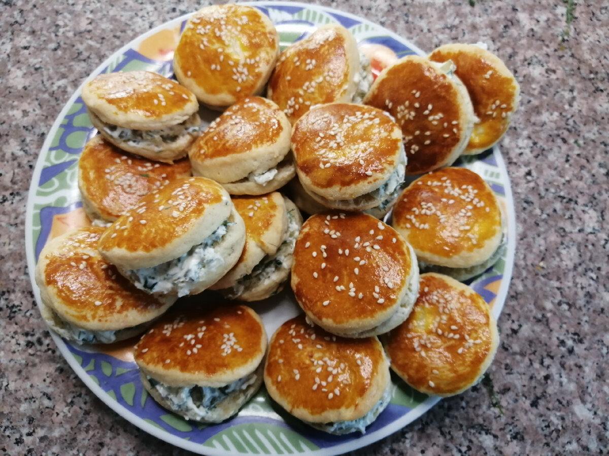 Простая и вкусная закуска на основе готового слоёного теста – аппетитные булочки с начинкой из творожного сыра и солёных огурчиков. Такое красивое и вкусное блюдо очень легко приготовить за короткое время. Великолепная альтернатива привычным бутербродам или незатейливая закуска для особых случаев. Ингредиенты: Приготовление: 1. Тесто немного раскатываем и вырезаем стаканом или формочкой кружочки. 2. Смазываем их желтком, посыпаем кунжутом. 3. Отправляем в разогретую до 200 градусов духовку на 10 минут. 4. Пока булочки в духовке, сделаем начинку. 5. Выкладываем сыр в тарелку. 6. Огурцы режем мелкими кубиками, добавляем к сыру. 7. Мелко режем зелень, чеснок пропускаем через пресс. Все перемешиваем. Начинка готова. 8. Вытаскиваем булочки, даём немного остыть. 9. Теперь будем начинять начинкой. Для этого разрезаем булочку вдоль (не до конца) и наполняем её начинкой. Проделываем все то же самое с остальными булочками. 10. Вот и все готово. Приятного аппетита! Предлагаю более подробно ознако