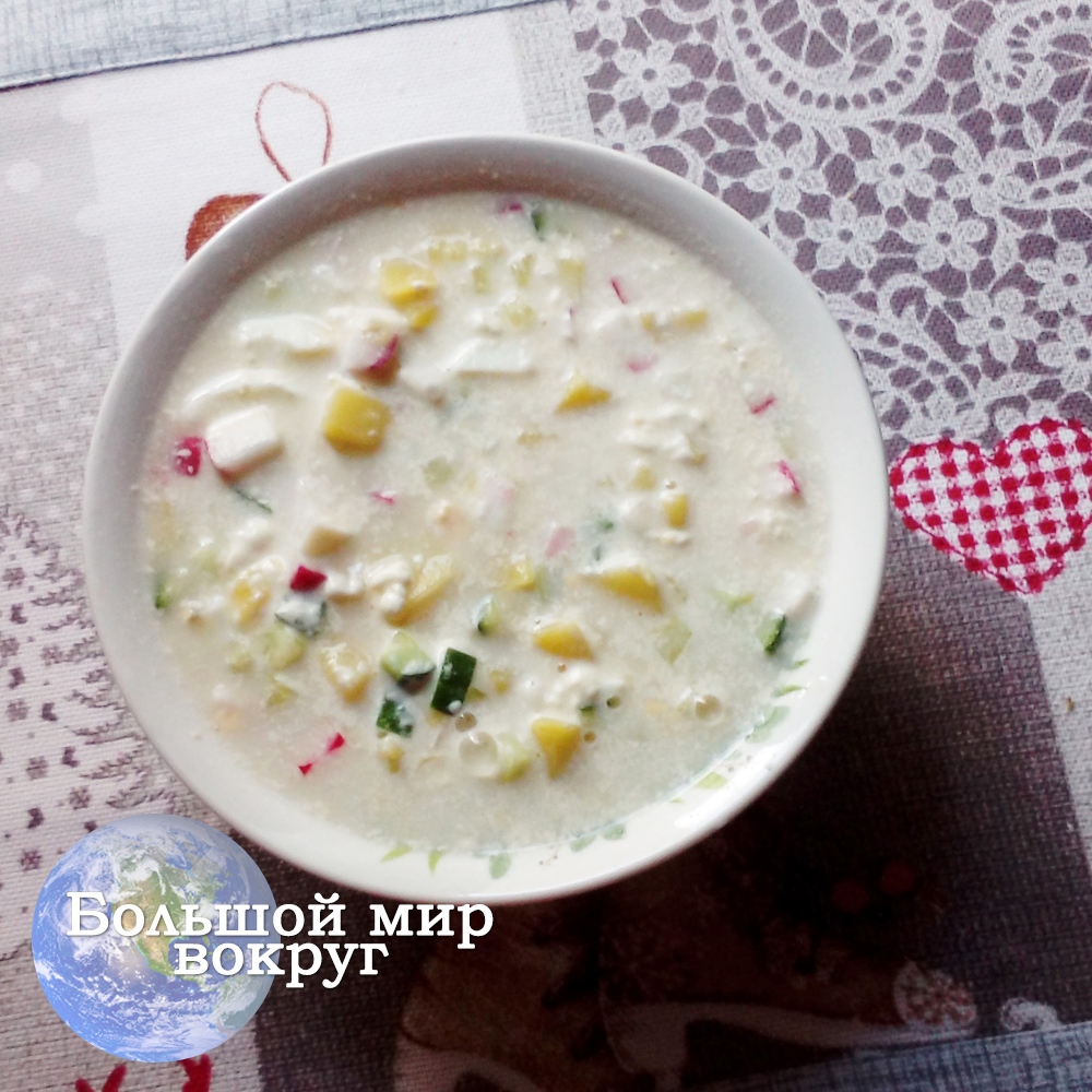 6. Соль по вкусу 7. Реже добавляю редис (обычно летом) ** Пропорции всегда беру 1 к 1 Я живу в городе, поэтому для меня такая окрошка получается максимально бюджетной (относительно цен магазинов). Если есть свой огород, или своя птица - то такая окрошка выйдет еще бюджетнее Как я готовлю эту окрошку: 1. Нарезаю кубиком картофель, яйцо и огурец (и редис если есть)