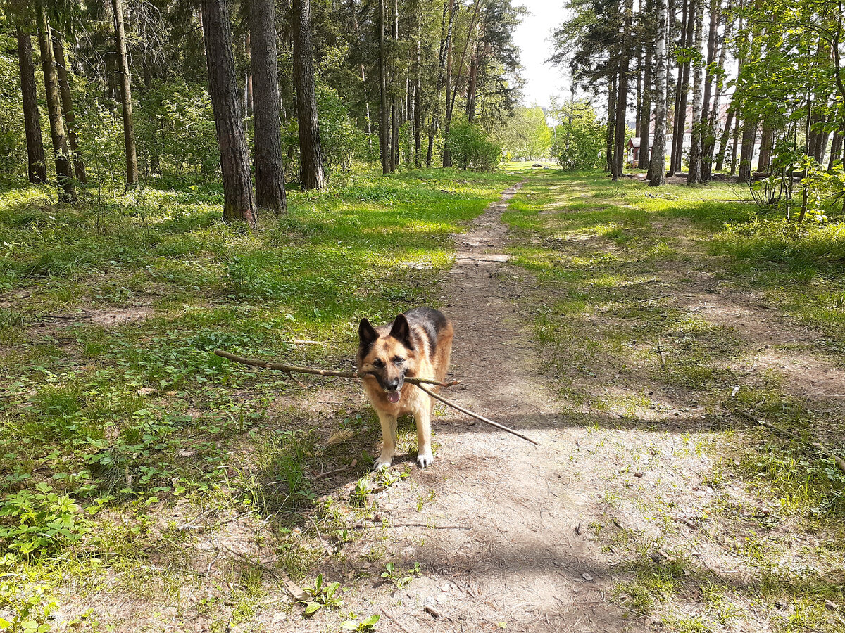 Хорошо, когда лес рядом с домом, а дома есть собака. Гуляем и гуляем. Три раза в день :) Без собаки сложно заставить себя выйти из дома. Всегда найдутся какие-нибудь дела. :) В лесу - целые поляны ландышей. На некоторых уже появились цветоносы. Полянами цветет земляника. Собака Кира любит поваляться во время прогулки. Но в лесу столько злющих комаров! Сразу налетает целая туча. Полежать не дают! Скорее идем дальше. Кислица отцвела, зацвела звездчатка. Теперь лес покрыт ковром звездчатки вместо кислицы. Муравьи строят новый муравейник на базе старого пня. Может их выселили из соседнего, большого муравейника? :) Здесь вовсю идет работа! Елки все в зеленых "лапках" А сосны - "в свечках". Собака Кира пытается скрыться от комаров в кустах черники. Не получается... Идем скорее из леса на открытое пространство. На поле! Здесь дует ветер, разгоняет комаров. Наконец, можно вволю поваляться :)