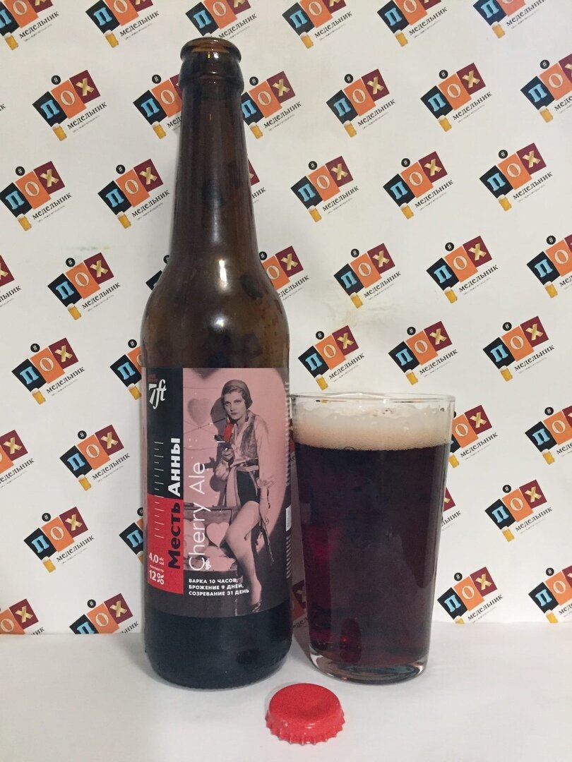 Статистика: пивной напиток, нефильтрованное, непастеризованное, экстрактивность начального сусла - 12%, алкоголь не менее 4% об., состав: вода подготовленная, солод пивоваренный ячменный, хмель, дрожжи пивные верховые, натуральный вишневый сок. Объём: 500 мл. Дата розлива: 500 мл. Изготовитель: крафтовая пивоварня «7 Футов», ООО «Крафт», Россия, г. Волгоград По братски: «Месть королевы Анны» - легендарное судно английского пирата Эдварда Тича по прозвищу Чёрная Борода». Абсолютная премьера! Дорогие друзья, все кто случайно сегодня зашёл на эту страницу, представляю Вашему вниманию «Вишневый эль» от пивоварни и бара «7 Футов», что находится в Волгограде по адресу Козловская 44а. Помимо данного пива там вы найдёте и другие их фирменные сорта. Уверен, равнодушными не останетесь. Теперь к новинке. К сезону пивоварня «7 Футов» решили тоже подготовиться и сварить вишневый эль. Ребята до последнего момента инфу отнёс держали в секрете. Но вот он красавчик, вишня здесь кислая, сладость минимал