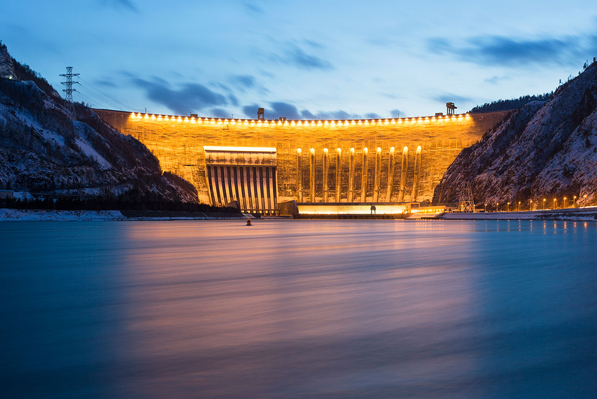 Саяно-Шушенская ГЭС Крупнейшая по установленной мощности электростанция России. Она расположена на реке Енисей, на границе между Красноярским краем и Хакасией, у посёлка Черемушки, возле Саяногорска. Год начала строительства - 1963 г. Годовая выработка электроэнергии - 23 500 млн кВт ч Разновидность электростанции - плотинная Расчетный напор - 194 м Электрическая мощность - 6400 МВт Красноярская ГЭС Гидроэлектростанция на реке Енисей, вблизи города Дивногорск Красноярского края. Входит в Енисейский каскад ГЭС, составляя его третью ступень. В комплекс Красноярского гидроузла входит единственный в России судоподъемник. Год начала строительства - 1956 г. Годовая выработка электроэнергии - 18 350 млн кВт ч Разновидность электростанции - плотинная Расчетный напор - 93 м Электрическая мощность - 6000 МВт Братская ГЭС Гидроэлектростанция на реке Ангаре в городе Братске Иркутской области. Является третьей по мощности и первой по среднегодовой выработке гидроэлектростанцией России. Входит в