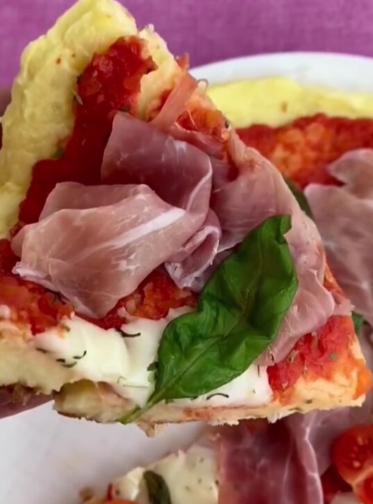 Приготовление: Измельчаем картофель (предварительно отваренный) в пюре, добавляем натертый пармезан, муку, соль и, наконец, яйцо. Хорошо перемешиваем и выкладываем на противень с пергаментной бумагой. Выпекаем в вентилируемой духовке при температуре 200º в течение 10 минут, пока поверхность не станет золотистой. Достать пиццу и сверху положить начинку: помидоры и тонко нарезанные ломтики сыра и снова отправить в духовку еще на 5 минут. Как только вынимаем из духовки, добавляем ветчину и базилик! Приятного аппетита!!! Ингредиенты (для двух человек): -3 картофелины -2 столовые ложки натертого пармезана -2 столовые ложки муки -1 Яйцо -Соль - Томатная паста - Помидоры черри - Тонко нарезанный сыр - Ветчина Понравился рецепт? Ставьте лайк и подписывайтесь на канал, чтобы ничего не пропустить!
