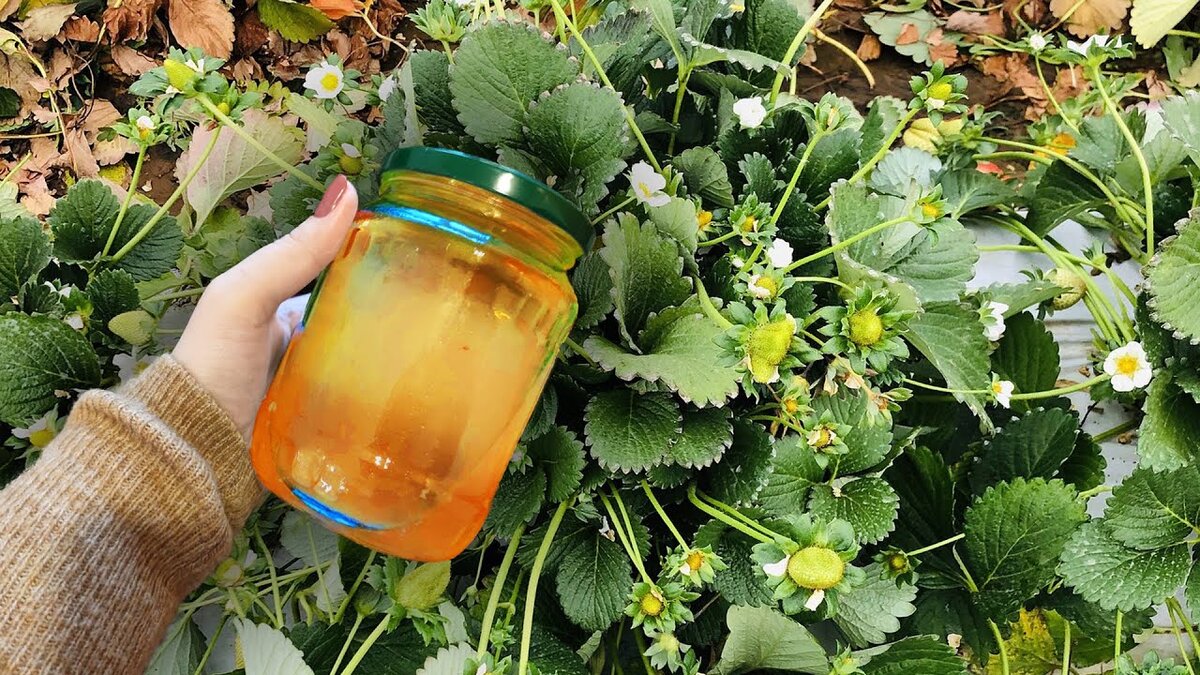 Здравствуйте уважаемые садоводы и огородники . Чтобы получить обильный урожай крупных и сладких ягод клубники необходимо . Правильно подкормить это натуральная подкормка стимулирует прочное цветение большое количество завязей и огромный урожай клубника от такой подкормки растет очень крупная . Именно это удобрение содержит в себе огромное количество макроэлементов аминокислот и минеральных веществ огромным плюсом этой подкормки является то что оно не только значительно увеличит урожай но еще и защищает клубнику от грибков клеща тли и останавливает развитие гнили делать . Такую подкормку очень легко сделать каждый сможет приготовить ее ! 1 литр кефира разводят в 10 литрах воды добавляю 3 столовые ложки залы , тщательно перемешивают подбивают под клубнику , из расчета 500 миллилитров на кустик также этим удобрением можно опрыскать клубнику . Саженцы , удобрения вообщем всё для сада я покупаю ТУТ