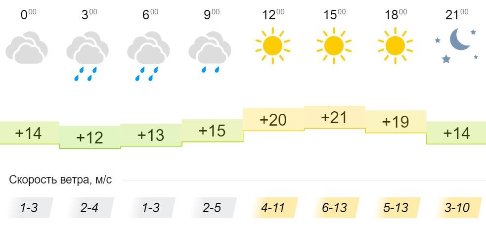 По прогнозу синоптиков, 23 мая в Кировской области ожидается относительно теплый день. С утра жителей региона ожидает пасмурная погода и дождь, однако уже к полудню ненастье прекратится и выглянет солнце. Днем воздух прогреется до +21С. Утром и вечером столбики термометров покажут значения +14…+15С. Скорость ветра в течение дня составит 2-13 м/с.