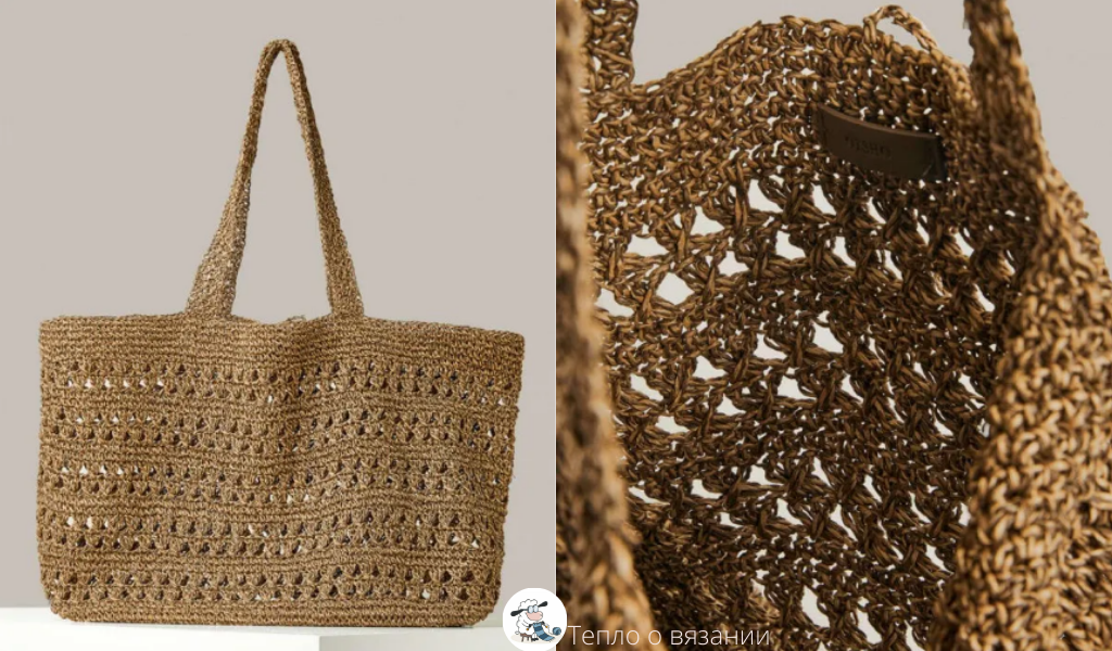 Мои бывшие коллеги иногда делали заказы на одежду и обувь в этом интернет-магазине. А что, очень удобно — заказала, тебе привезли домой, примерила несколько вариантов, выбрала то, что подошло, рассчиталась с курьером. И всё, ты с обновкой! Пошла и я в Ламоду. В первую очередь меня интересовали летние сумки и я их получила. Например, сумка-шоппер из натурального плетёного материала (какого?), изготовленная в Китае под брендом Oysho. На странице товара в строке "материал" написано: "бумага". Если фото увеличить — шнур похож на джутовый. В принципе, в его составе — высокий процент целлюлозы, а это и есть бумага. В строке "застёжка" прописано: "шнурки". Сумка без подклада, довольно вместительная (ширина х высота = 36 х 45 см. Высота вместе с ручками?) Цена: 3999 руб. Купили бы?.. Мне кажется, связать проще и интереснее (второе более верно). Ещё одна сумка без подклада на длинной ручке через плечо: Сумка бежевого цвета ажурной вязки. Завязывается шнурком. Размеры: 31 x 25 x 18 см. Длина р