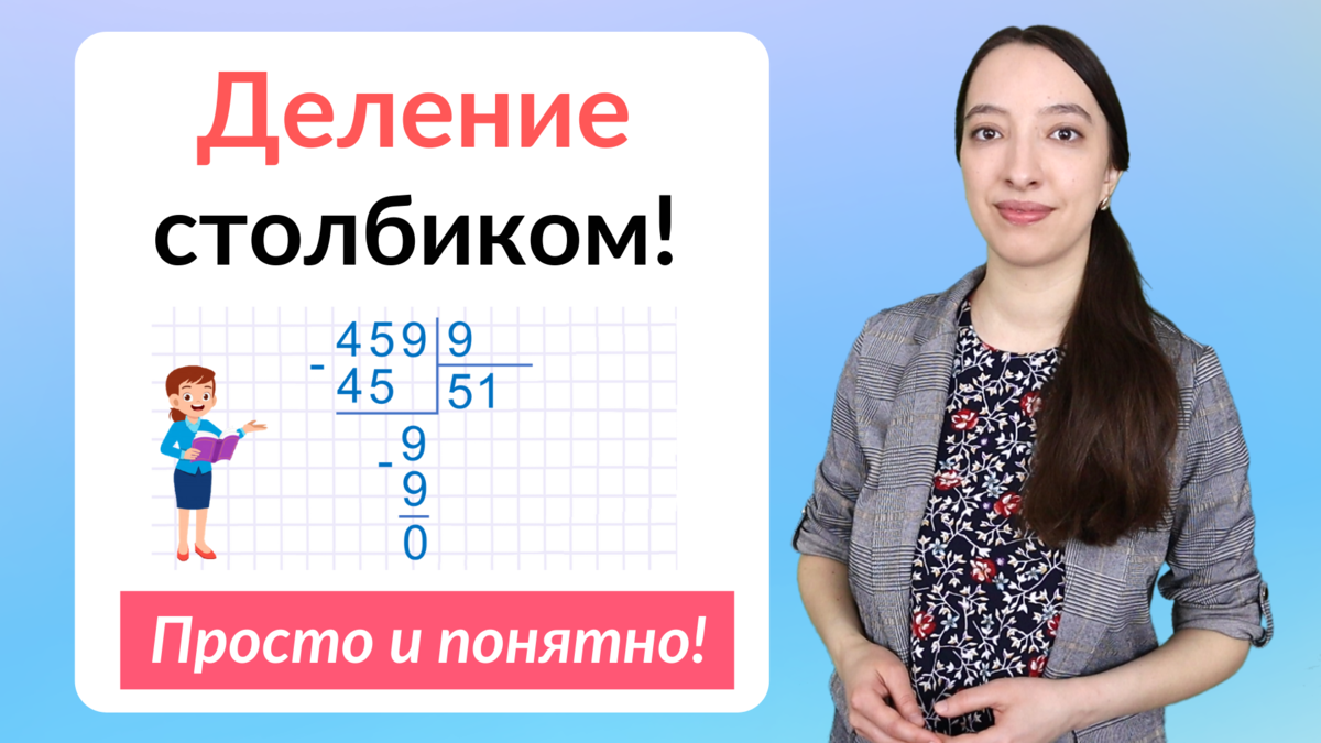 Здравствуйте, дорогие родители! Как научить ребенка делить столбиком? Это одна из самых сложных тем на уроках математики в начальных классах, и постоянно встречается в самостоятельных и контрольных работах. Давайте вместе научимся объяснять детям деление столбиком. Алгоритм деления 1. Прочитай и запиши пример. 2. Выдели первое неполное делимое. 3. Определи высший разряд и количество цифр в частном. 4. Выполни деление, чтобы найти первую цифру в частном. 5. Выполни умножение, чтобы определить, сколько единиц высшего разряда осталось разделить. 6. Проверь, правильно ли подобрана цифра в частном. 7. Если получился остаток, запиши его в единицах нижнего (следующего) разряда и прибавь единицы того же разряда делимого (если они есть). 8. Продолжай деление, пока не выполнишь его до конца. 9. Проверь результат. А теперь вместе потренируемся в делении столбиком на видеоуроке выше 👆. Ставьте 👍 и подписывайтесь, чтобы получать мои полезные советы, уроки своевременно. Добавляйтесь ко мне в Инс