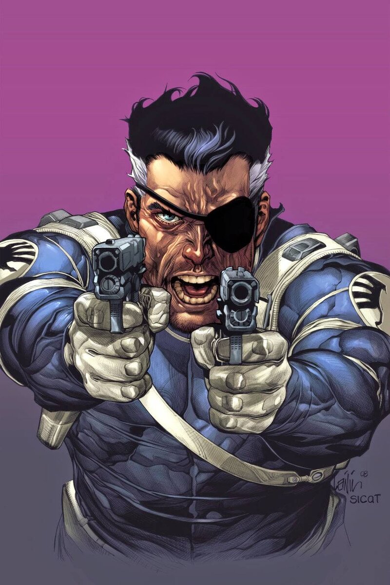 58 лет назад, в мае 1963 года, во вселенной комиксов Marvel Comics, появился новый герой - Николас Джозеф Фьюри. Ник вырос на улицах Адской Кухни во времена Великой Депресии – в 30-х годах прошлого века. Офицер Сэм Сойер взял его на службу, и юный Фьюри (англ. Nick Fury) записался на фронт аккурат к началу Второй мировой войны. В итоге он стал командиром «Кричащих Командос» – элитного отряда, который выполнял самые отчаянные миссии. Ник Фьюри и Сыворотка бесконечности За годы войны команда Ника одержала большое количество побед над нацистами, разгромив Барона Фон Штрукера, а также банду Красного Черепа. Во время одной из миссий Фьюри был ранен, и профессор Бертхольд Штернберг вколол ему эксеприментальную сыворотку Формулы Бесконечности. Благодаря ей Ник выжил, хотя и потерял глаз. Кажды год ему нужна была новая доза препарата, чтобы жить дальше. Побочным эффектом сыворотки стало невероятное долголетие Ника. После войны герой дослужился до полковника. Когда повсюду стали появляться люди