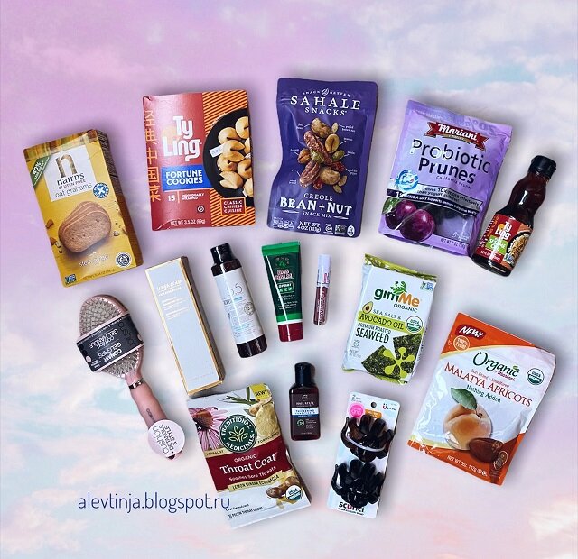 Люблю промокоды на общую скидку (сейчас это - MAYSALE, не забудьте воспользоваться). Можно заказывать всё, что душа пожелает! Эта посылка как раз из таких. Тут и еда, и косметика, и аксессуары. Правда, никаких витаминок нет. Видимо, на тот момент была абсолютна здорова :) В посылке - две постоянные покупки и три давно желанных товара. Урвала! Итак, заказала - получила: 💜 Nairn's, Oat Grahams, Gluten Free, Stem Ginger, 5.64 oz (160 g) Пожалуй, это одно из самых вкусных печений, что я пробовала! Ну, во всяком случае, из безглютеновых. Стоит недорого, состав классный. Буду брать ещё. 💜 Ty Ling, Fortune Cookies, 15 Individually Wrapped А эти печенья купила, чтобы почитать. Предсказания ;) 💜 Sahale Snacks, Snack Mix, Creole Bean + Nut, 4 oz (113 g) У любимого производителя появилась новая линейка с несладкими снеками, два из которых я тут же и купила. Этот вариант - с намёком на креольскую кухню. Мы его уже съели, если интересно, читайте мой отзыв на сайте. Он там как " самый