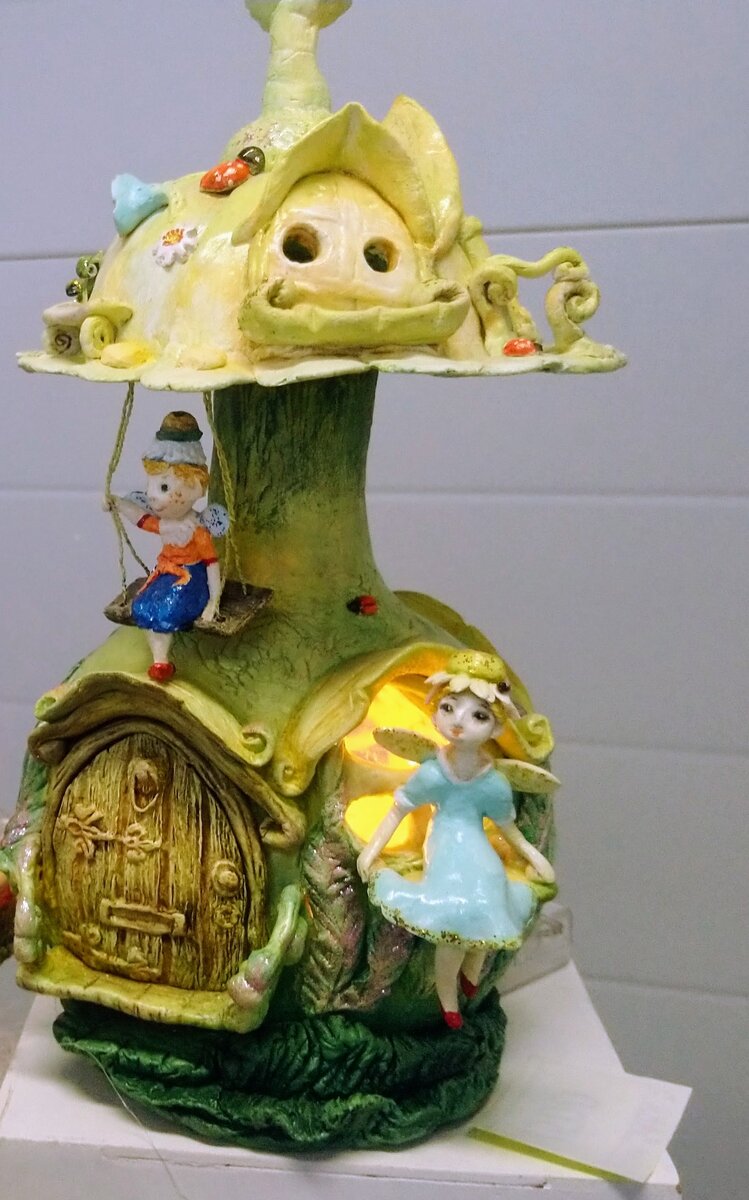 Домик из папье маше,сделан полностью вручную.Безопасная подсветка от светодиодной гирлянды.Расписан акриловыми красками.