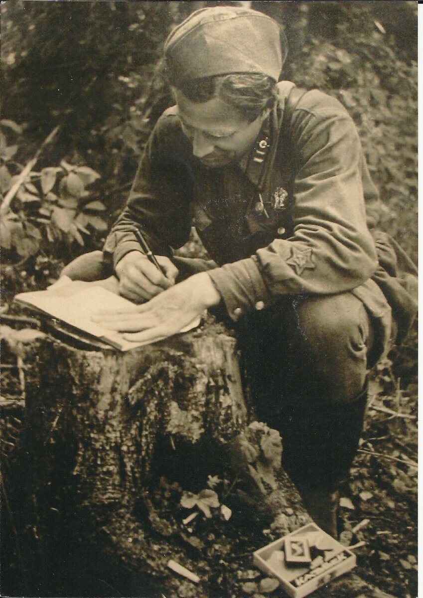Весточка. На опушке берёза, Ветер песню поёт, Там солдат на листочке Домой весточку шлёт. Вы держитесь, родные, Вам сейчас тяжело, Мы прогоним фашистов, Будет всем нам легко. Он письмо и награды В треугольник сложил, Завернул всё в платочек И в шинель положил. Только весточка эта Домой не пришла, На заре всё затихло И не слышно врага. А сейчас его внукам Читают письмо - С поисковым отрядом Прилетело оно. На столе все медали И платочек лежит, Военком со слезами Кое-как говорит. Только можно ли что-то В словах передать, Ту войну и погибших Нам нельзя забывать. Фото взято из открытых источников