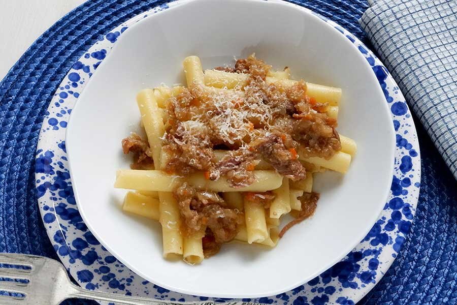 Сегодня на нашем канале портала Hitaly.ru очередной рецепт неаполитанской кухни. Паста Дженовезе (Genovese), несмотря на свое явно созвучное Генуе название, не имеет никакого отношения к столице Лигурии. Это традиционное неаполитанское блюдо, основанное на белом соусе, приготовленном с большим количеством лука. Длительный процесс тушения превращает лук в пюре, куда некоторые кулинары добавляют белое вино, чтобы уравновесить чуть сладковатый вкус лука легкой винной кислинкой. Некоторые любители используют луковый соус в тандеме со стейком, но основная масса жителей Неаполя не мыслит его без пасты ziti. Почти все в финале добавляют перец и тертый сыр, это – классика, которой следуют и авторы этого рецепта с сайта GialloZafferano, откуда, как всегда, мы этот рецепт и позаимствовали. Итак, сегодня в нашем блоге – знаменитая паста Дженовезе, встречайте! Ингредиенты: 320 гр пасты Ziti 60 гр моркови 1 кг репчатого лука 1 лавровый лист 600 гр говядины 60 гр сельдерея 1 пучок петрушки 100 гр б
