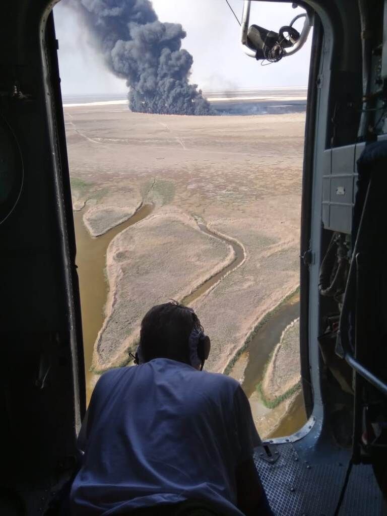 19 мая днем в Атырау стоял запах гари. На запрос «АЖ» в пресс-службе ДЧС не ответили, но вечером сделали общую рассылку для СМИ: на номер 112 поступило множество звонков от горожан, после чего в 16 часов к очагу задымления вылетел вертолет МИ-8 филиала АО «Казавиаспас».