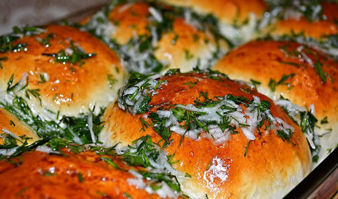 Для смазки растопить сливочное масло, смешать его с тертым чесноком и порезанным укропом.