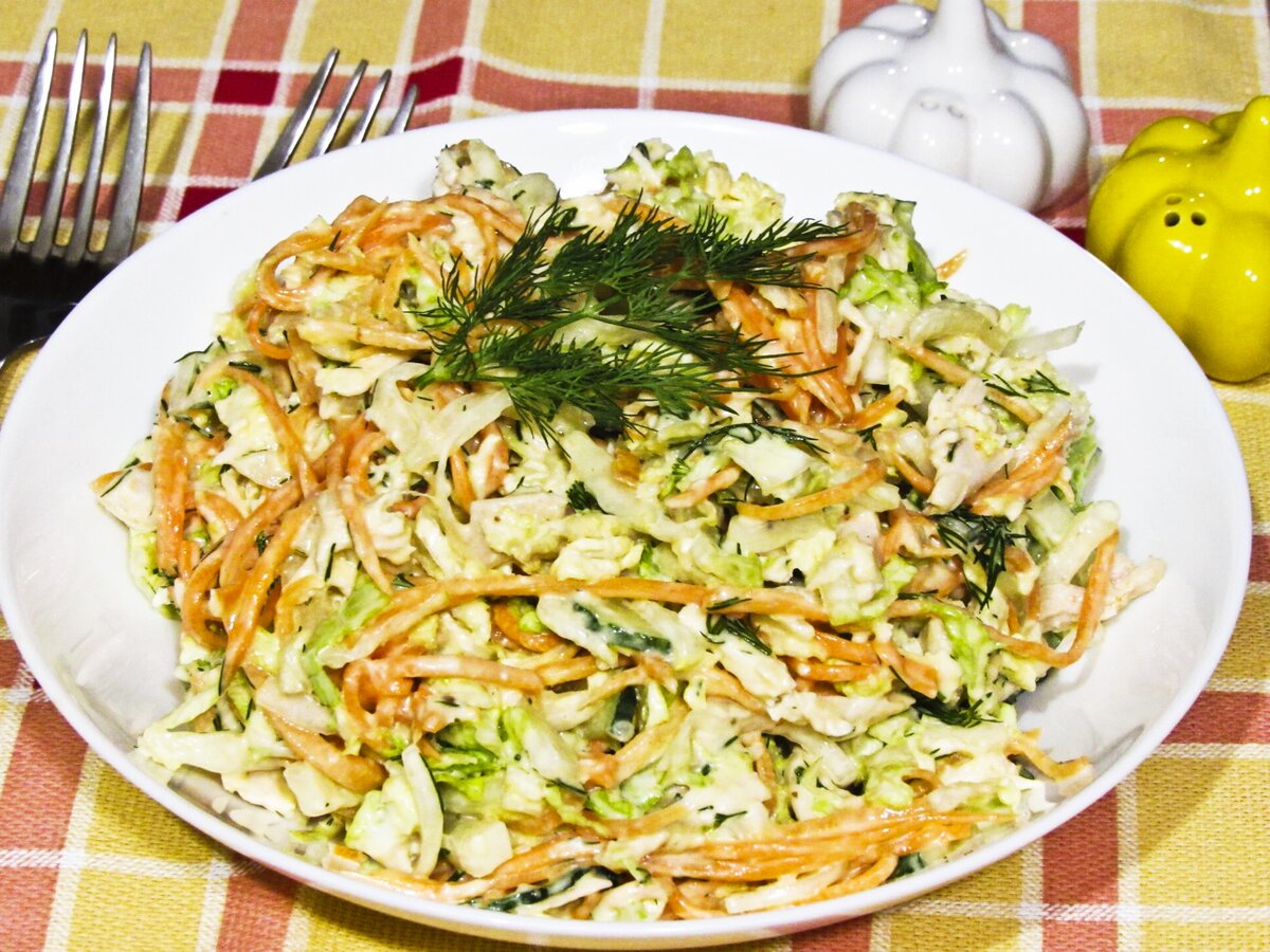 Салат "Любимый" Больше не могу скрывать этот шедевр от Вас, дорогие мои подписчики!!! Это просто вкуснейший салат,всегда готовим его на праздники,посиделки и т.д. Набор продуктов : Пекинка-350 гр; Филе курицы-2 шт (1 бабочка); Корейская морковь-300 гр; Перец сладкий- 3 шт; Огурчик-3 шт; Соль; Перец; Специи; Растительное масло; Укроп; Чесночёк; Майонез. Приступаем к пригоовлению : Итак,мы берём курочку и обжариваем на сковороде,добавив к нему специи,соль и перец, капусту нашинковали , все остальные продукты нарезаем и перемешиваем в миске, пока филе остынет, после того,как она остынет,добавляем ее в салат. Для вкуса я посоветую Вам добавить сок лимона. Выкладываем листья салата для подложки и сверху накладываем салатик. Надеюсь,что Вам понравится мой рецепт, всем приятного аппетита,дорогие подписчики!:)