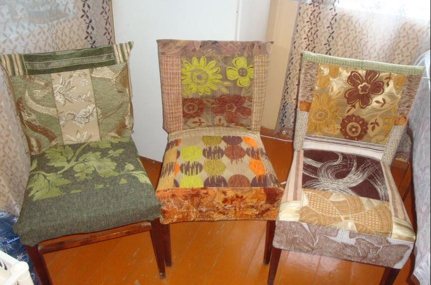 В прошлом году я вдруг взяла и сшила на даче чехлы на стулья. Отчитывалась тут, конечно. По ссылке весь процесс, а результат вот - всё равно никто по ссылкам не ходит. :):):) Стульчики получились прямо как новые! :) Но это на даче - без инструментов и из подручных материалов. А тут, в городе, при наличии кучи тряпочек и всяких специнструментов решила сделать мужу подарок посложнее и покрасивее. Настоящий пэчворк чтобы был, а не просто лоскутки. Процесс тоже показывала - и в видео, и в тексте. В том тексте я показала семь блоков-разрезалок. Использовала в результате три! :) Ну и ещё по парочке из других разрезалок. Их у меня на фото отдельно нет, зато я сфотографировала кресло! Та-дам! Это знаменитый "Фингал" из ИКЕА. :) Служит который год верой и правдой. И вот дослужилось до специального суперчехла. На заднюю сторону я стратегичненько поставила самые красивые блоки. А потому что я из своего кресла его вот так вижу. :) Решила сделать одно длинное полотно, которое забросила на обрат