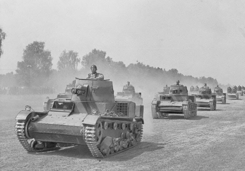 Блицкриг, также известный как световая война, является идеальным воплощением концепции мобильной войны. Используя быстрые легкие танки и координируя действия по радио, немцы прорвали линии своих врагов, особенно французов во время вторжения во Францию в 1940 году. Поскольку это была новая концепция для многих стран, большинству из них не хватало огневой мощи, чтобы противостоять относительно легкобронированным танкам.