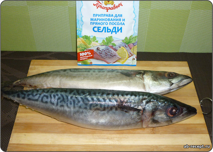 Готовится маринованная скумбрия проще простого, в качестве маринада будем использовать готовую смесь из магазина для маринования сельди. Да, да, вы не ослышались, для сельди. Как показала практика, данная смесь отлично подходит для любой рыбы. Рыба получается с нежным и пряным вкусом. Очень аппетитная закуска, например, с вареной картошечкой. Пальчики оближешь! Для блюда потребуется: Если у вас нет возможности приобрести готовую смесь для маринования рыбы в магазине, вы можете приготовить ее сами. В состав маринада из расчета на 1 литр воды потребуется: 3 столовые ложки соли без горки, 2 столовые ложки сахара без горки, перец черный молотый 2 г, перец красный молотый 2 г, перец душистый молотый 2 г, кориандр 2 г, гвоздика 5 шт., молотый имбирь 2 г, лавровый лист 1 шт. 1. Рыбу потрошим, убираем голову и хвост. 2. В кастрюльку наливаем литр воды, добавляем специи, соль и сахар. Доводим до кипения, помешиваем до полного растворения соли и сахара, а затем остужаем маринад. 3