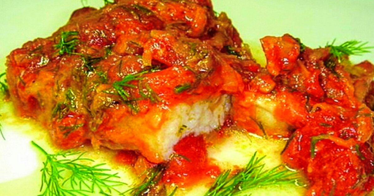 Ингредиенты: Приготовление: Филе рыбы вымойте, обсушите. Смешайте 2 ст. л. масла и лимонный сок, добавьте орегано, черный перец, соль. Полейте соусом рыбу и оставьте мариноваться в течение 30 минут. Нарежьте лук полукольцами, перец брусочками, помидоры очистите от шкурки, измельчите в блендере. Противень смажьте оставшимся маслом, выложите кашицу из помидоров, добавьте овощи, томатную пасту и молоко. Отправьте соус в разогретую до 200 градусов духовку на 15 минут. Достаньте горячий соус, выложите на него рыбу. С помощью ложки полейте каждый кусочек соусом еще и сверху. Чеснок измельчите, посыпьте им блюдо. Украсьте веточками розмарина и базилика, отправьте рыбу в духовку на 20 минут. При этом убавьте температуру до 180 градусов. Перед подачей украсьте мелко нарезанным укропом Приятного аппетита!