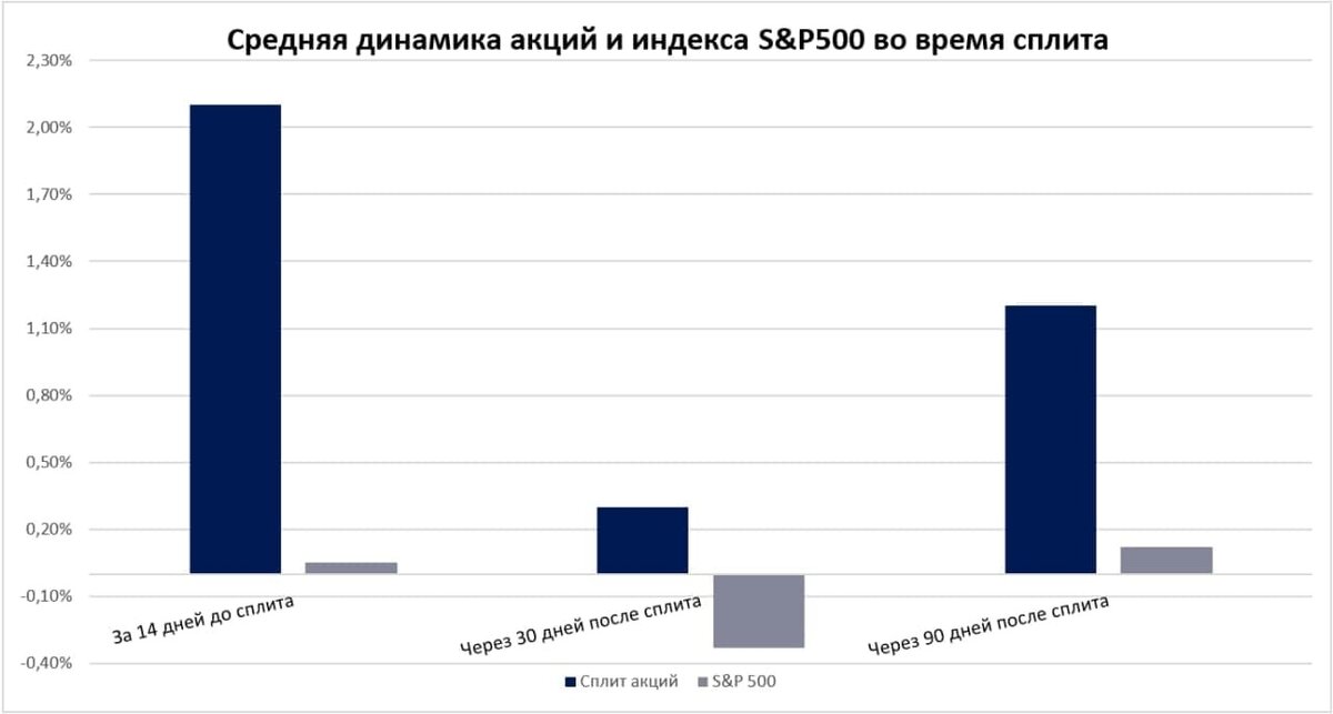 Сплит — это процесс «дробления» одной акции на несколько. В результате количество бумаг компании увеличивается, а их стоимость пропорционально уменьшается. Инвесторы, владеющие бумагами компании, получают дополнительные акции. Сразу отметим, что сплит не оказывает прямого влияния на экономические показатели компании. Однако, как отмечают аналитики, котировки чаще всего растут перед «дроблением», но в основном это относится к популярным у розничных инвесторов компаниям. В 2020 году сплит провели две известнейшие компании — Apple и Tesla. На торгах после «дробления» бумаги росли. В конце прошлой недели акции NVIDIA выросли на 4% после новости о сплите. Сплит проводится, чтобы сделать акции более доступными для розничных инвесторов с небольшим капиталом. Таким образом, причина роста на этом событии — ожидания, что большее количество инвесторов приобретет бумаги.
