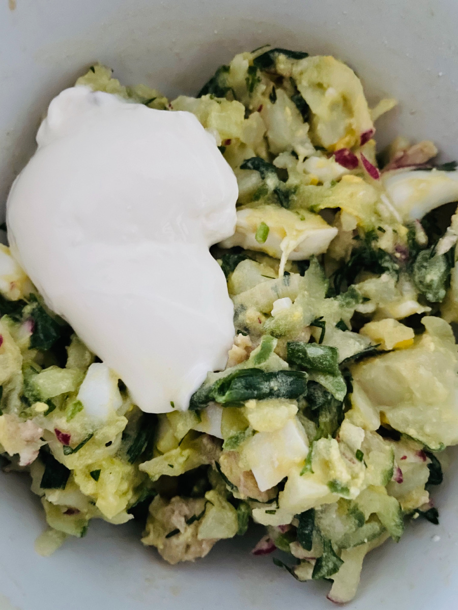 Окрошку я готовлю на домашнем квасе, можно конечно и покупной использовать, только надо пробовать, чтобы квас не был слишком сладкий, а то окрошку тогда солить не пересолить, все равно сладкая.
