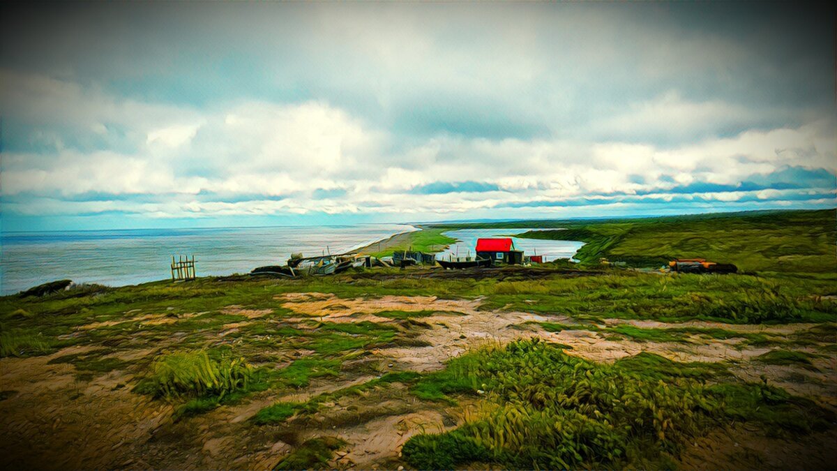 Я оставил рюкзак с ботинками на берегу и в одних трусах и майке переплыл протоку. Как только я вышел из воды сразу почувствовал леденящий ветер. База была совсем рядом, и я пошел просить у мужиков помощи. Мужики с удивлением меня встретили, но довольно-таки быстро поняли ситуацию и сказали, что помогут перевезти вещи. Они завели гусеничный вездеход, зацепили лодку-кунгас, спустили ее на воду и мы отправились на лодке по заливу на другой берег протоки, где были мои вещи.