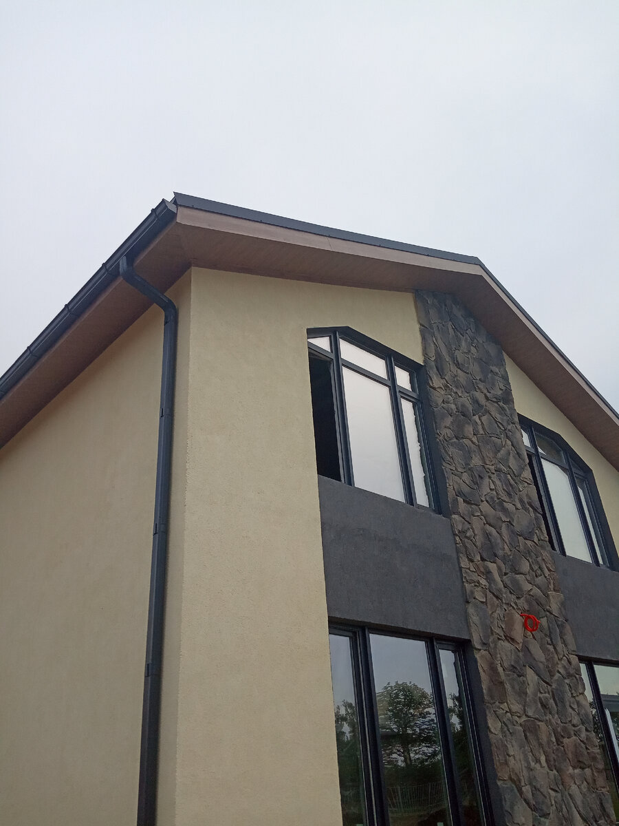Итак я приехал в коттеджный посёлок посмотреть на на дом подобный тому, который собираюсь строить. Он произвел на меня хорошее впечатление, единственное что не понравилось - это отделка чёрным камнем. На картинке у архитектора всегда получается лучше, тем более в светлых тонах. Внутри фото не делал, но всё было добротно просторно мне понравилось. Вернувшись в офис снова переговорил с менеджером по возможной цене этого дома. Мне ещё раз называли сумму в которую обошёлся дом, который я смотрел, и что я могу рассчитывать но эту сумму. Я внёс оплату за типовой проект, переговорил с архитектором и уехал на море на полтора месяца. Дистанционно с архитектором вносили изменения После моего возвращения с моря, проект был готов. Для начала строительства нужно было решить еще одну проблему- получить разрешение от властей на строительство с отступом 1,2 метра от соседнего участка. Вместо положенных 3 метров. (Об этом будет отдельная статья). На решение этой проблемы уходит минимум полгода вр