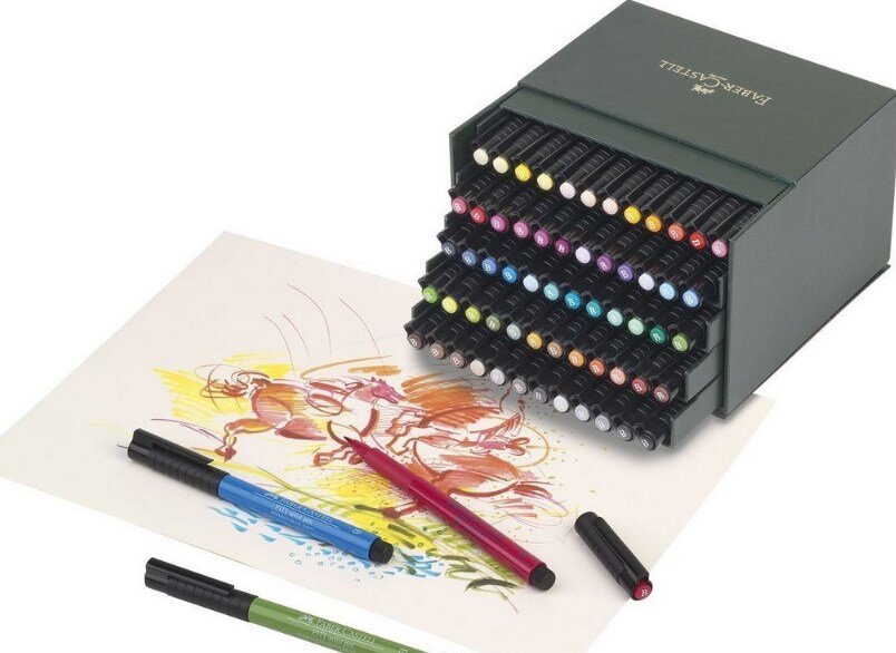 Важно: такие ручки всегда бывают только одноразовыми! Капиллярная ручка – это инструмент для письма, в котором чернила поступают сквозь пористое волокно. Такой же принцип лежит в основе фломастеров и маркеров. Преимущество состоит в том, что такая ручка может писать в любом положении стержня и в любых температурных условиях. Капиллярные ручки чаще всего применяются для черчения аккуратных тонких линий или обведения мелких деталей рисунка. Капиллярная ручка оставляет на бумаге равномерный, тонкий и четкий след. Держать такую ручку при письме следует практически вертикально. Их можно использовать и для письма, в этом случае записи получатся аккуратными и ровными. Но следует учитывать то, что при письме такой ручкой важно писать практически без нажима, иначе стержень деформируется. Линеры Для рисования или черчения линерами следует использовать плотную и гладкую бумагу. На тонкой бумаге надпись будет проявляться на обороте и пачкать нижние