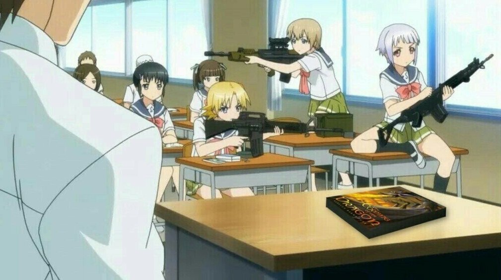 Трудно сказать, что меня сподвигло на просмотр этого аниме, ибо я даже не являюсь фанатом огнестрельного оружия, однако после просмотра я понял, что быть знатоком и не требовалось. Более того, аниме будет интересно, как новичкам, которые не способны понять, чем один автомат отличается от другого, так и ярым фанатом, которые смогут оценить юмор более тонко. Но обо всем по порядку. Спешу представить вам забавное и местами бойкое аниме «Оружейная школа» (Upotte!!).И давайте для начала я вам попробую описать главную завязку сюжета, чтобы вы понимали, о чем будет это аниме, а потом уже мы более детально разберёмся в основных его плюсах. Так вы сможете определиться – хотите ли вы его посмотреть. Идея сюжета События этого аниме происходят в крайне нестандартной школе. Дело в том, что учащиеся там не являются обычными детьми, а представляют собой олицетворение оружия разных стран. Притом сами главные героини неоднократно докажут вам, что к людям их причислить нельзя, а потому новоприбывшему уч